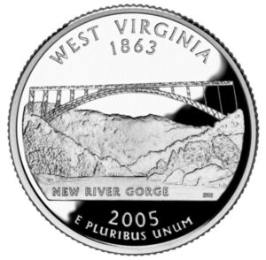 One important factoid while searching for this coin is that there is a very valuable Doubled Die Reverse in which the words “New River Gorge” are quite strongly and clearly doubled, making it easy to spot, albeit somewhat on the rare side.